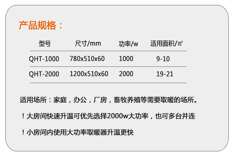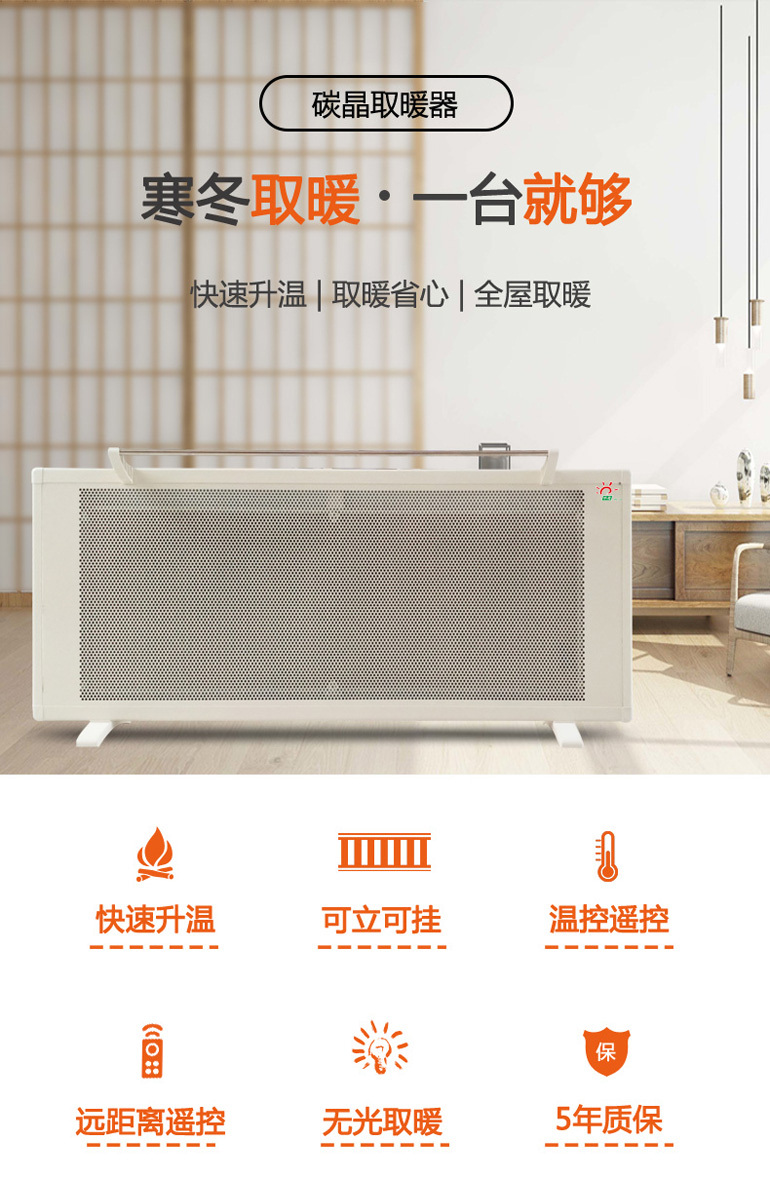 碳晶电暖器通电即热,移动方便,碳晶电暖器在种植业、养殖业、餐厅、卧室、别墅、酒店、公寓、宾馆等没有取暖设施地方得到了广泛的应用。