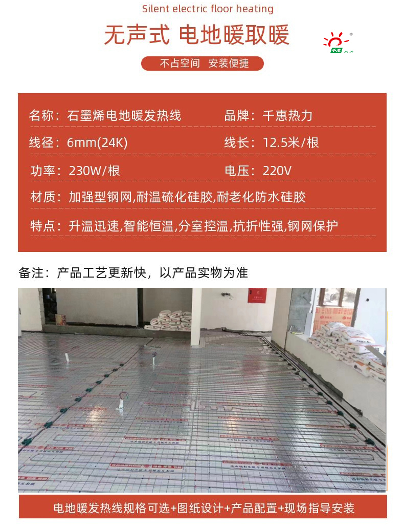 千惠热力科技有限公司生产的石墨烯速导发热线,通电转化率高,性能稳定,全屋热量散发,手机WIFI远程操控灵活采暖,千惠热力电地暖厂家可按您的采暖需求进行石墨烯发热线。